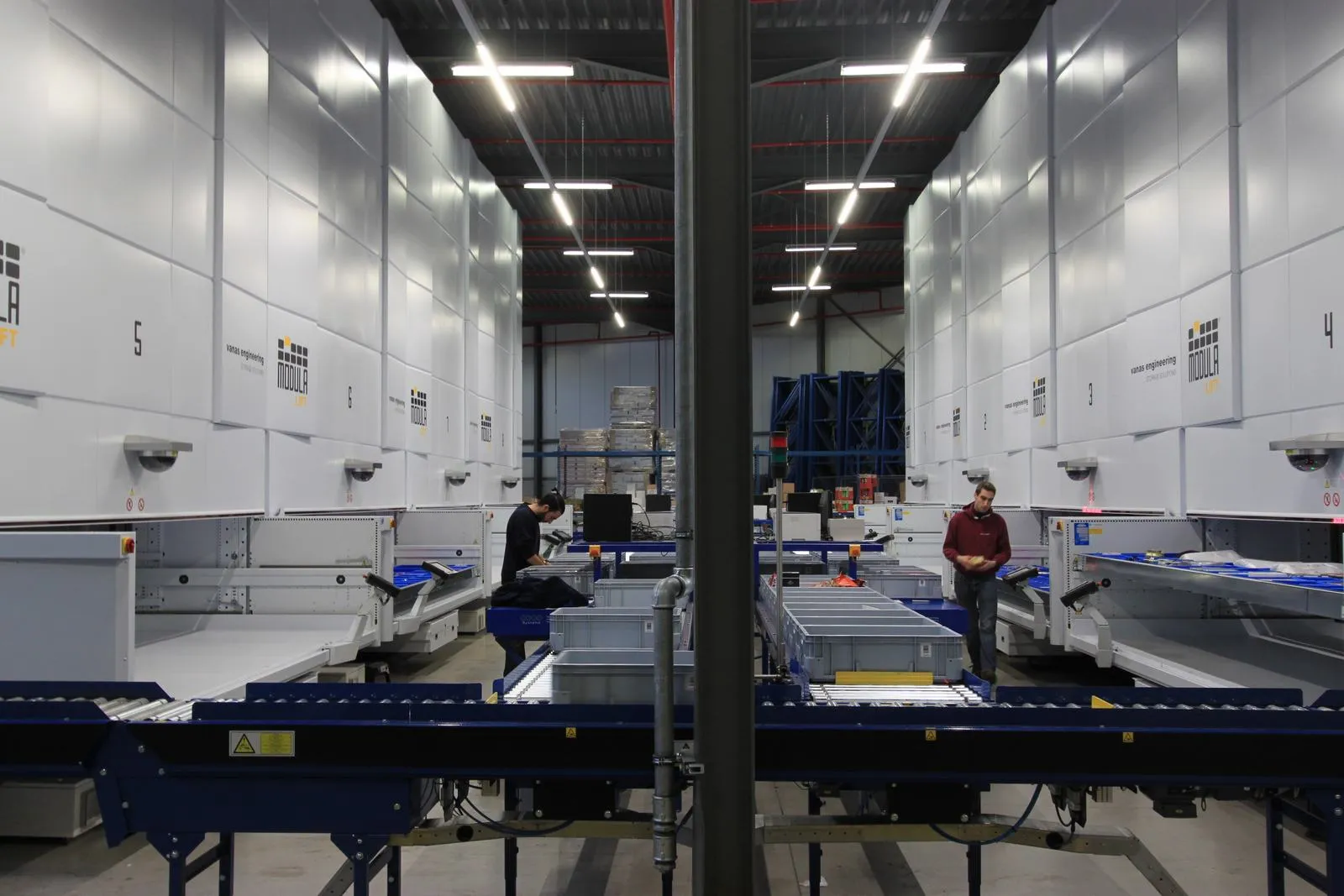 Vanas realiseerde een totaalconcept waarin hardware en software volledig geïntegreerd samenwerken. De kern van de oplossing bestaat uit acht Modula verticale liften, gekoppeld aan een geautomatiseerde ontvangstzone met rollenbanen van Pacoma Systems en een automatische verpakkingsmachine van Neopost.